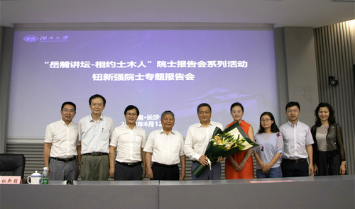 6月12日晚,“岳麓讲坛-相约土木人”系列活动钮新强院士学术报告会在复临舍报告厅举办。中国工程院院士陈政清教授,校长段献忠教授等出席报告会。