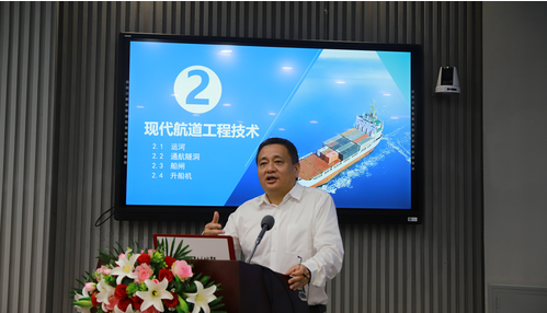 钮新强院士对“航运发展与长江黄金水道建设”进行讲解。钮新强院士由航运发展的概述作为切入点,指出了航运工程技术日益发挥着不可取代的作用。以长江黄金水道的关键问题以及解决对策为例,详尽地为在场师生介绍了现代航道工程技术。