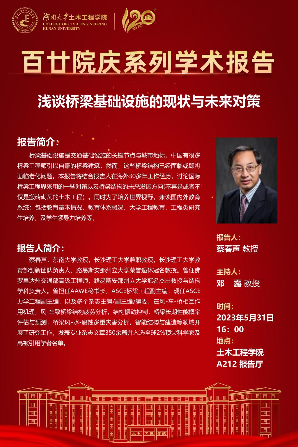 百廿院庆 学术报告|蔡春声:浅谈桥梁基础设施的现状与未来对策