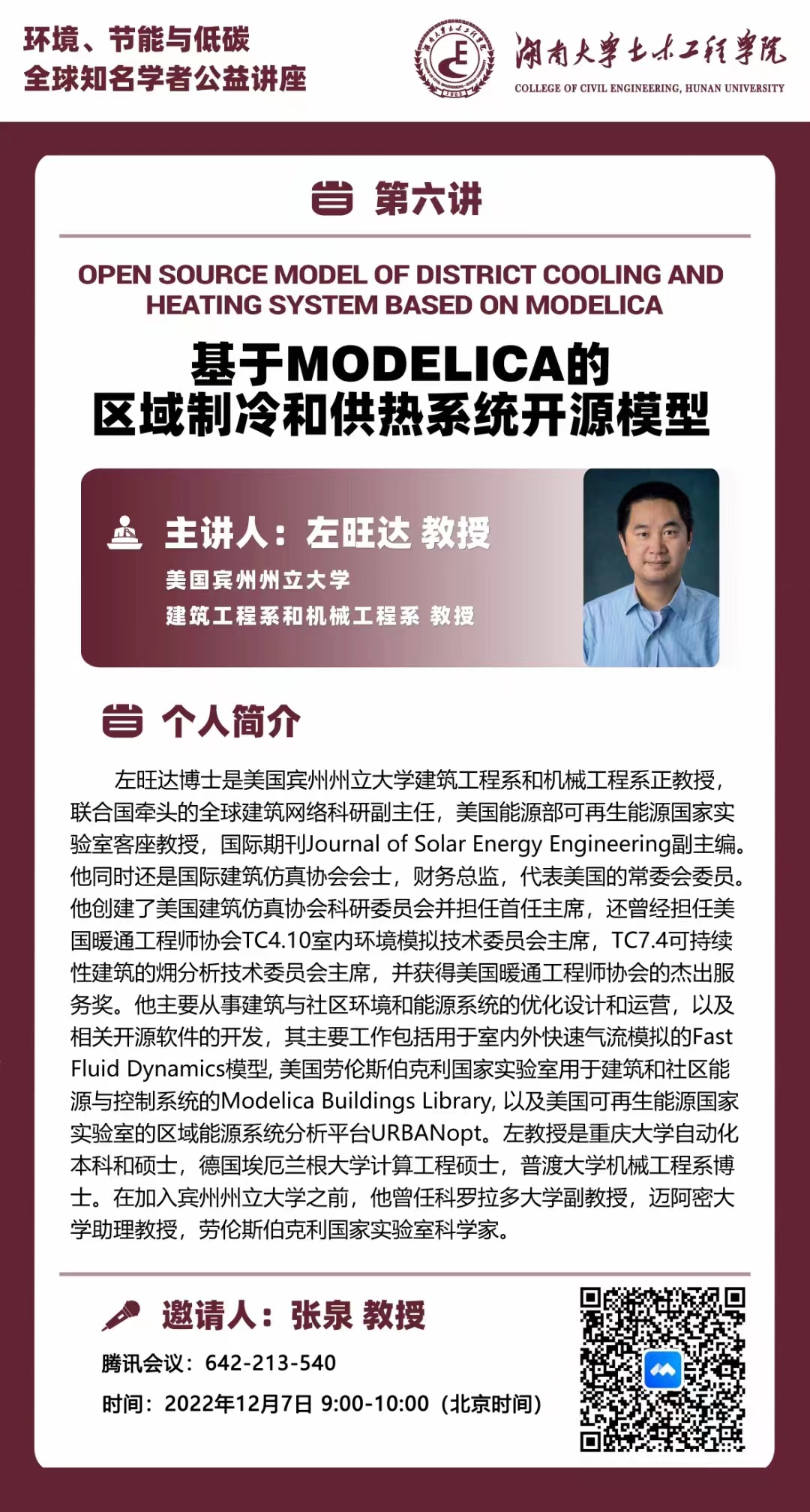 左旺达:基于MODELICA的区域制冷和供热系统开源模型