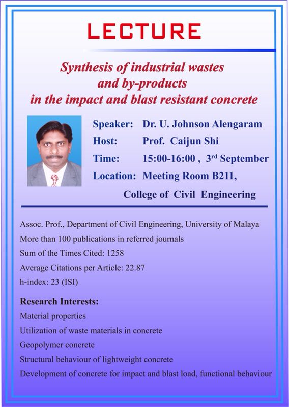 Dr. U. Johnson Alengaram :抗冲击抗爆混凝土中工业废料及副产物的合成及其作为建筑材料的应用前景