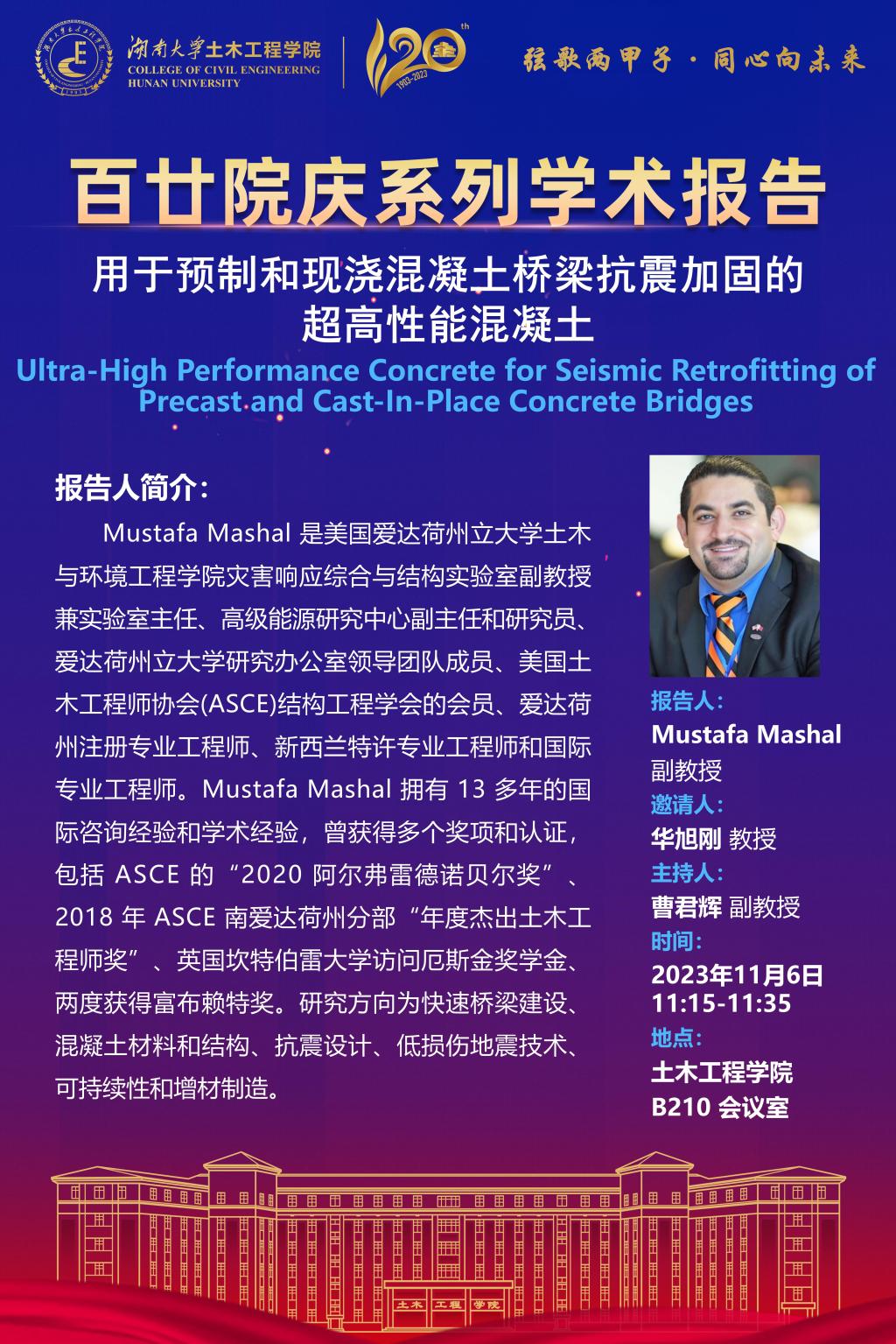 百廿院庆 学术活动|Mustafa Mashal:用于预制和现浇混凝土桥梁抗震加固的超高性能混凝土