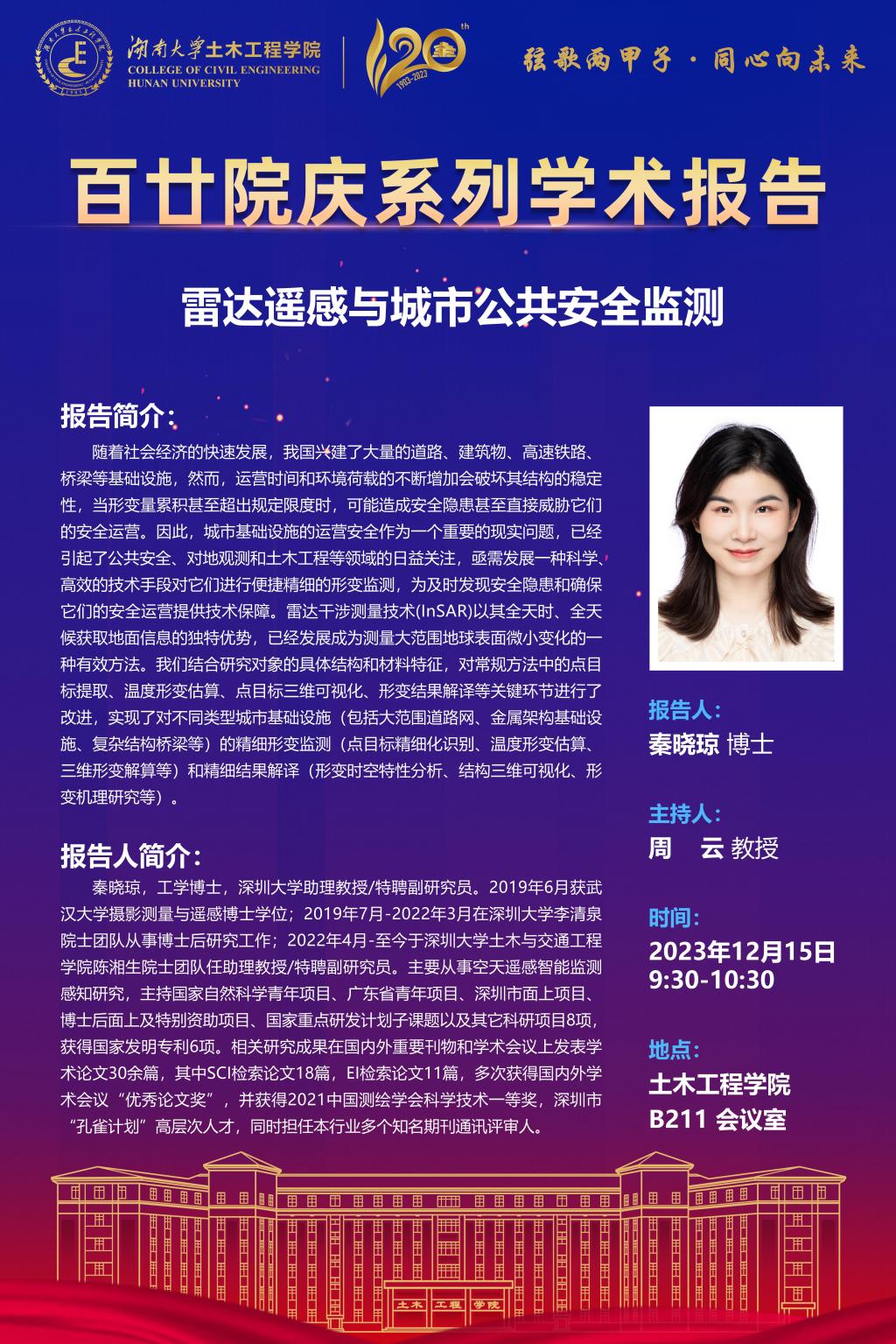 百廿院庆 学术活动|秦晓琼:雷达遥感与城市公共安全监测