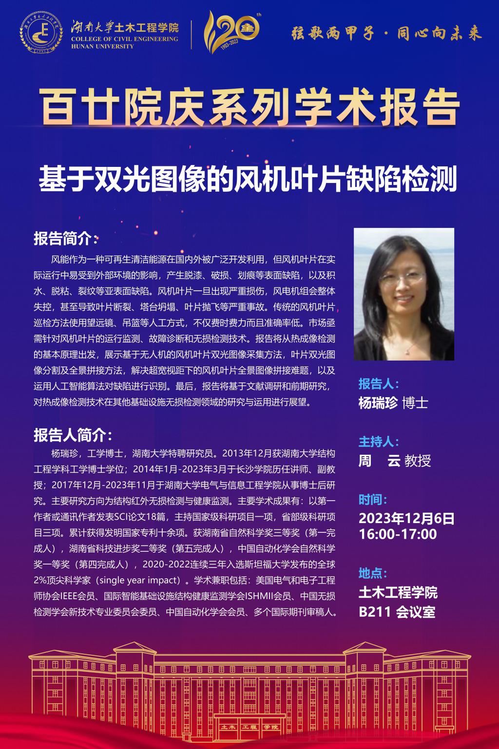 百廿院庆 学术活动|杨瑞珍:基于双光图像的风机叶片缺陷检测