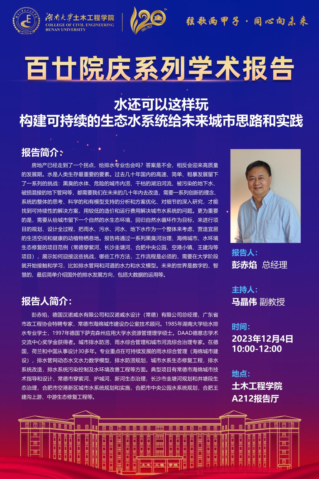 百廿院庆 学术活动|彭赤焰:水还可以这样玩 构建可持续的生态水系统给未来城市思路和实践