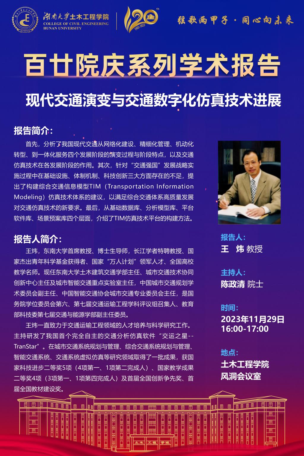 百廿院庆 学术活动|王炜:现代交通演变与交通数字化仿真技术进展
