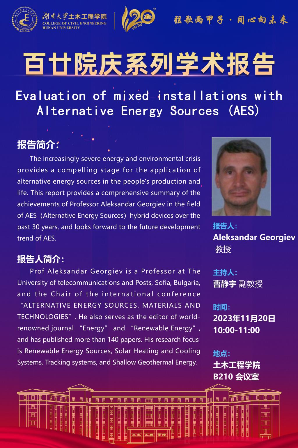 百廿院庆 学术活动|Aleksandar Georgiev:Evaluation of mixed installations with Alternative Energy Sources (AES)