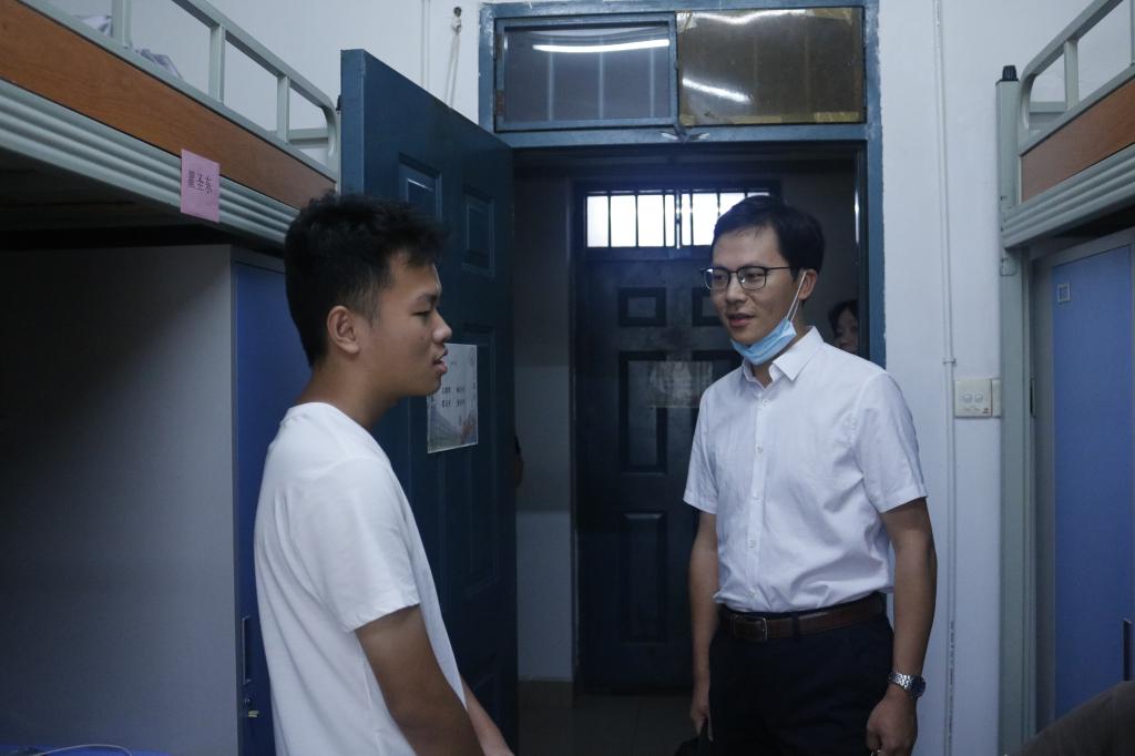 院长邓露,党委书记彭晋卿,党委副书记秦鹏、周石庆,副院长华旭刚、周云,院长助理张恒龙及学工办全体辅导员、团委老师前往德智园区新生宿舍看望慰问2022级新生。