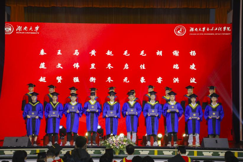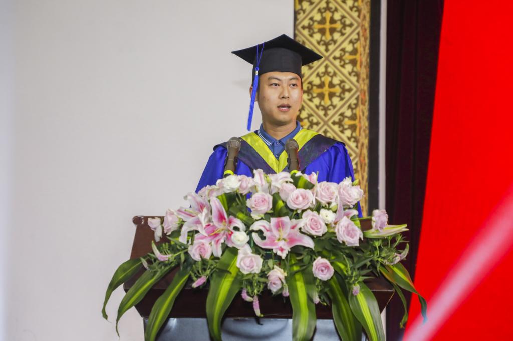 研究生毕业生代表许栋梁以“实事求是显初心”“敢为人先担使命”两个方面向全体同学分享了自己在湖大的故事,表达了自己”以小我之劳,筑大国之梦”的理想信念。