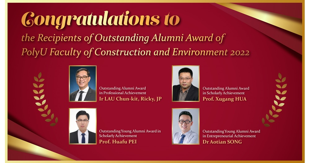 华旭刚教授荣获“杰出校友学术成就奖”(仅一人)。香港理工大学建设及环境学院院长李向东讲席教授高度肯定了获奖人在科技创新和人才培养方面的贡献,其在致贺信表示“华旭刚教授在桥梁空气动力学、结构控制与健康监测等领域作出了突出贡献,尤其随机模型修正华方法对行业贡献巨大,并致力于为母校培养青年人才”。同期其它学院的“杰出校友学术成就奖”获奖人包括来自牛津大学和加州大学伯克利分校等单位的学者。