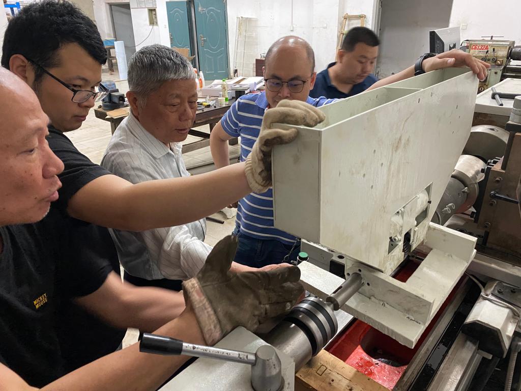 团队负责人陈政清院士(中)指导团队成员进行高性能电涡流阻尼器研发
