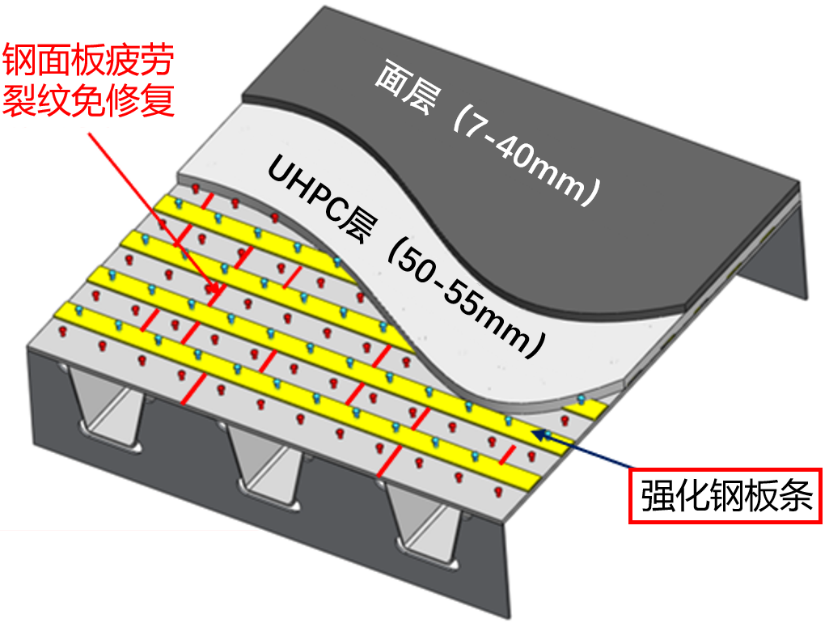 图2钢桥面疲劳裂纹免修复UHPC加固方案