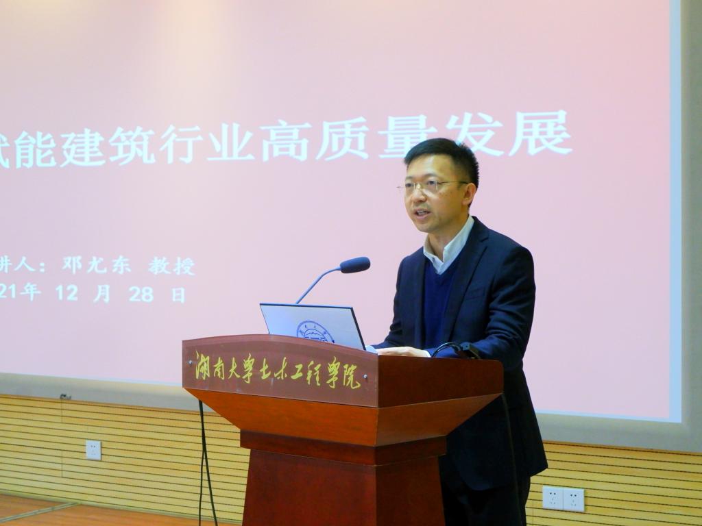 A212报告厅举行。校长助理陈仁朋为邓尤东颁发聘书、佩戴校徽,邓尤东作题为《谈持续卓越,赋能建筑行业高质量发展》的讲座。中建五局代表、欧美av