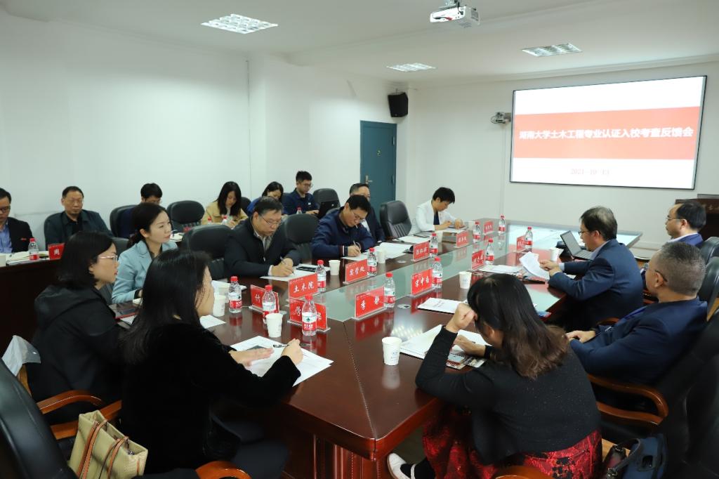 在为期3天的现场考查工作中,专家组对土木工程专业的办学情况进行了全方位、立体化、多维度的考查,走访了图书馆、岳麓书院、工训中心材料力学实验室、物理实验中心、工程制图机房、BIM信息化中心、工程测量实验室、教学资料室、建筑结构实验室、防灾实验室、桥梁实验室、风洞实验室、流体力学实验室、道路实验室、地基基础实验室、建筑材料实验室等教学场所和设施;旁听了《混凝土结构设计原理》、《结构力学》、《道路规划设计》、《装配式混凝土房屋结构设计》等课程的课堂教学;调阅了土木工程专业的教学资料和管理文件,包括培养方案、教学计划、课程教学大纲、试卷、毕业设计、课程设计、实习报告、实验报告等;访谈了学院管理人员代表、教师代表、用人单位代表、毕业生代表以及在校生代表等。