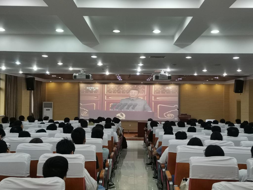 师生代表收看大会实况,并在观看直播后展开热烈讨论。
