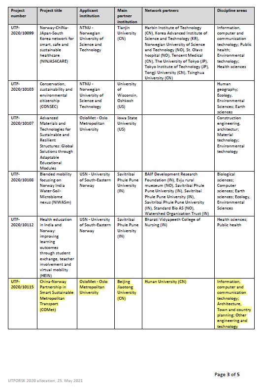UTFORSK项目是由挪威教育研究部(Norwegian Ministry of Education and Research)资助,挪威高等教育国际合作与质量提升署(Diku)管理,旨在支持挪威与中国、日本、美国等国高等教育机构在可持续未来领域建立长期的合作关系(//diku.no/en/programmes/utforsk)。在2020年度获该项资助的35个项目中,有7个项目涉及中国科研院校与企业。其中,北京交通大学-欧美av