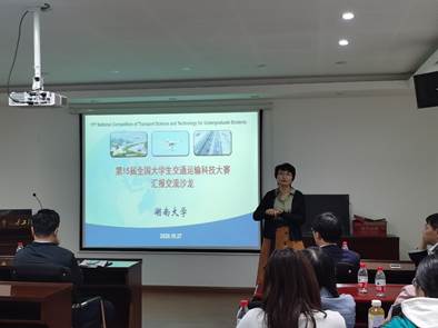 李洁老师介绍了交科赛的发展历程、比赛流程、作品要求,以及本次大赛我校参赛作品的提交情况。