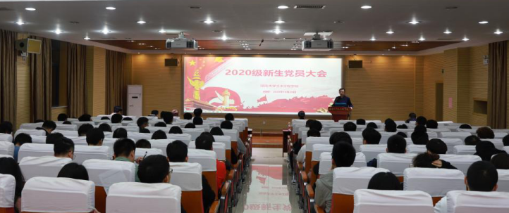 2020级新生党员大会在学院A212报告厅召开。学院党委书记彭嘉芬老师,党委副书记秦鹏老师,学工办主任向杰老师,各年级辅导员,2020级全体研究生党员,本科生党员、研究生团总支代表参加了此次会议。会议由党委副书记秦鹏老师主持。