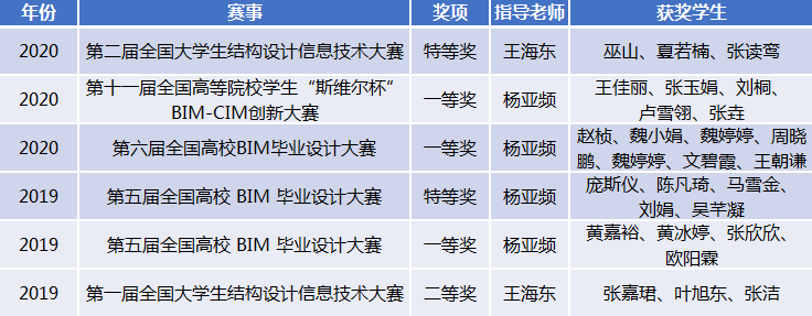 近年来十分重视推进土建类本科生在BIM、CIM技术上的学习与应用,并积极组织学生参加各级学科竞赛,构建“以赛促教、以赛促学”的信息化教学新模式,并取得了丰硕的成果。