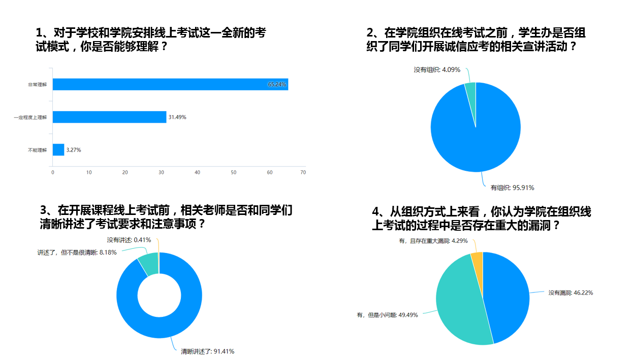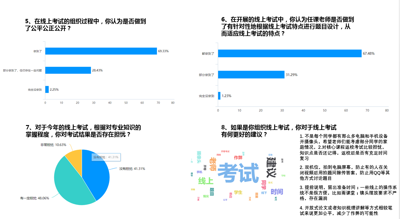 考试完成以后,为全面了解本次线上考试执行情况,学院教务办和学工办联手针对本次在线考试设计了一组匿名问卷调查,对象为欧美av
