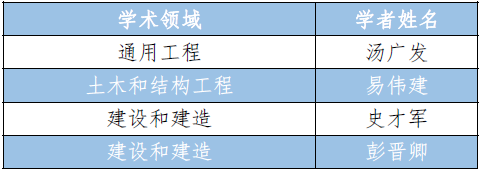 共有4位学者分别在通用工程、土木和结构工程以及建设和建造领域入选。
