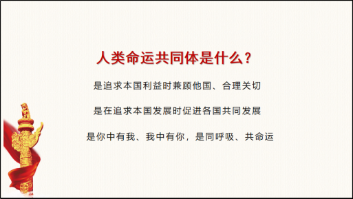 辅导员彭薪羽的开学第一课:《并肩战“疫”,共建人类命运共同体》。