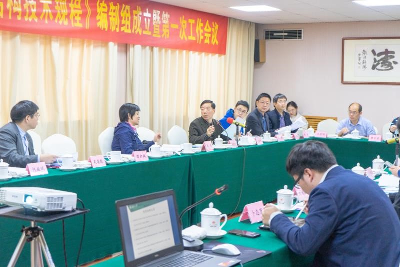 副院长彭晋卿致辞,感谢归口单位、各位专家、编制组成员对标准工作的支持,并向与会领导和编制组成员简要介绍了本标准编制的背景和意义,以及活性粉末混凝土加固技术的特点,最后对标准编制工作提出要求,希望编制组在现有工作基础进一步完善相关理论研究,按照标准编写规定高标准完成编制工作。