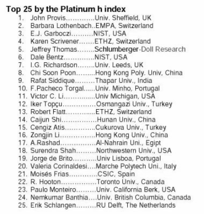 史才军教授在建造与建筑材料(Construction and Building Materials)领域Platinum H 因子全球排名第14,大陆排名第1。