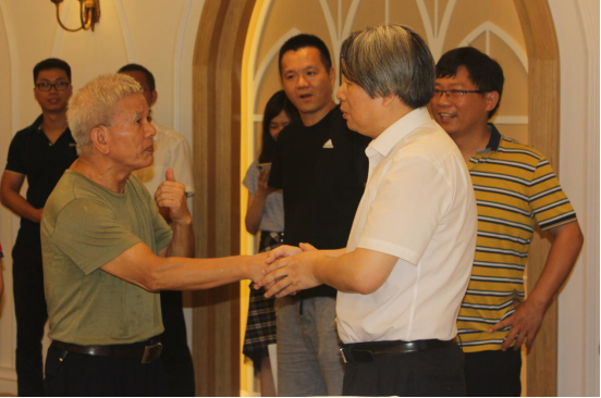 龚光彩教授与76届毕业生梁家洪高工握手