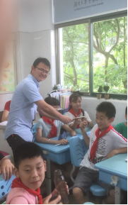 工程应用力学研究中心党支部委员给五(3)班孩子们发放纪念品