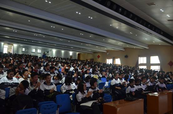 此次报告会面向高一年级800余名学生,邓露教授结合自己的求学经历向同学们分享了“习惯坚持、习惯优秀、习惯努力”的人生信条,他精彩的励志故事赢得了在场同学们的阵阵掌声。