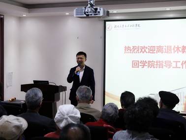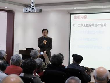 随后,学院院长施周教授代表学院向老同志们汇报院情,详细介绍了学院的发展现状、2018年主要工作成绩、2019年工作重点和进一步推进学科建设的方案措施,并希望老同志们继续关注、支持和指导学院的发展建设,学院也会一如既往地关心、爱护各位离退休教职工。