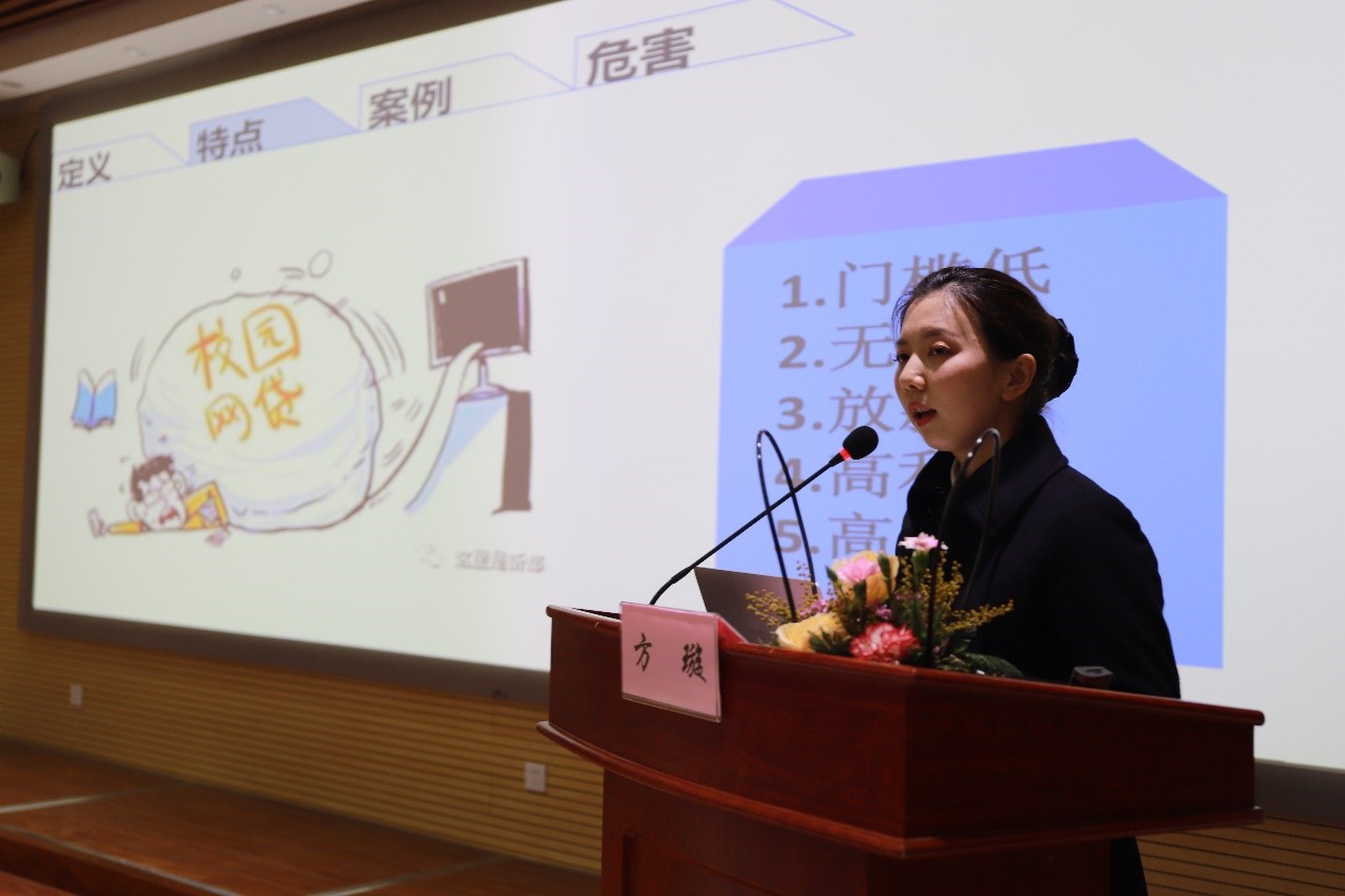 在如今各类校园贷产品层出不穷、鱼目混珠的环境下,该讲座旨在提高同学们的金融风险的警惕意识,以及为同学们普及一些基础金融知识。讲座开始之初,一个扫码抽奖的环节调动起了同学们的热情和积极性。接下来,方璇经理从校园贷的定义、特点、案例和危害为同学们进行了详细的介绍。并以一个欧美av