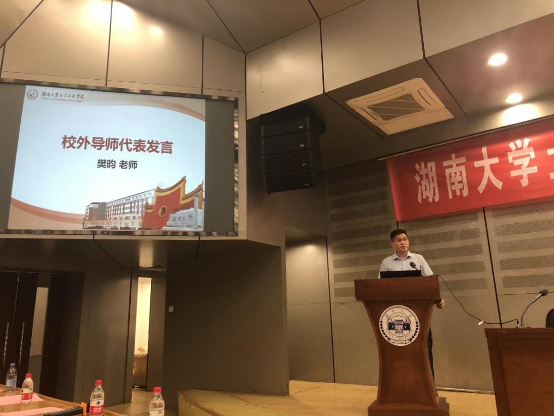教师代表张恒龙老师发表题为《适应新环境,构建新格局》的讲话,提出令人印象深刻的三个热爱:热爱湖大,热爱土木,热爱专业,激发新生对学习和生活的热情。