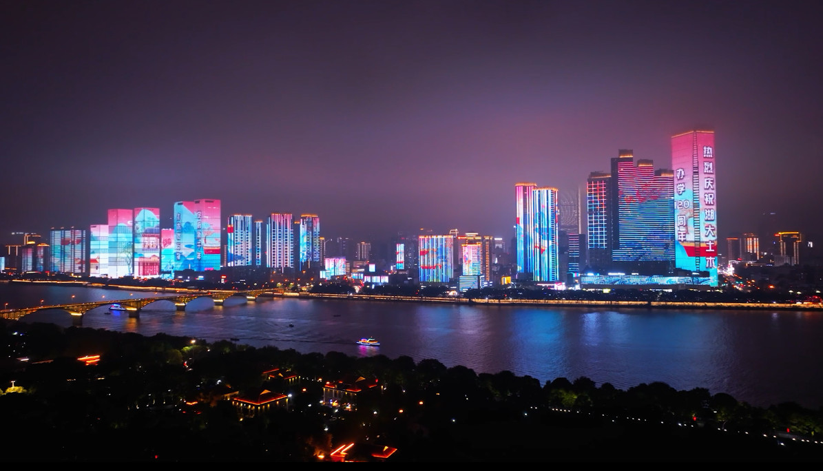 长沙校友会“一江两岸”灯光秀庆祝。