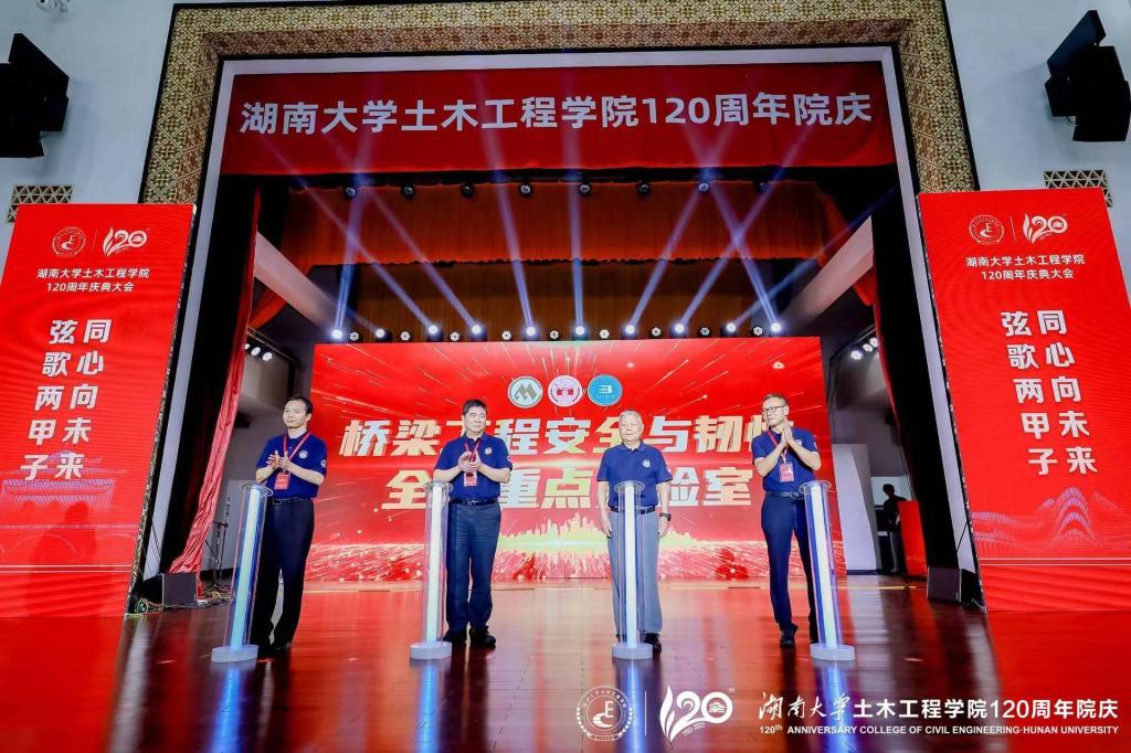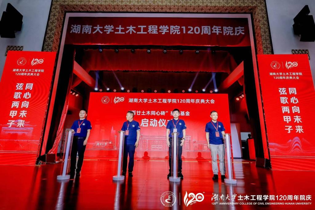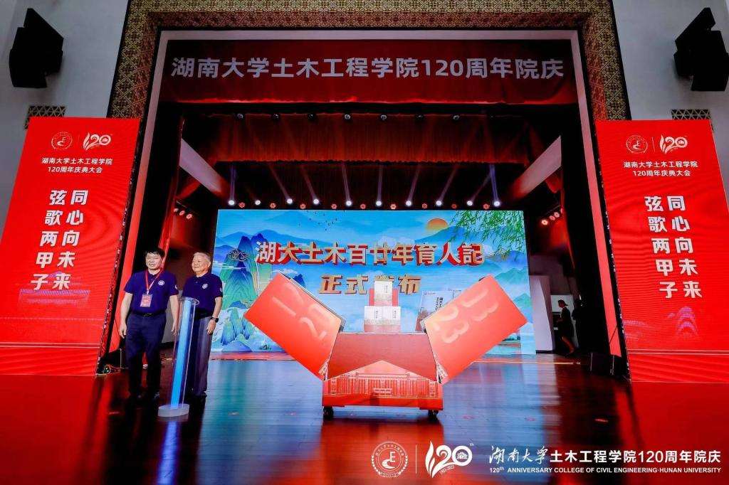 大会现场,“从教五十年”荣誉教师表彰仪式、《湖大土木百廿年育人记》发布仪式、“百廿土木同心砖”捐赠基金启动仪式、全国重点实验室启动仪式相继举行。
