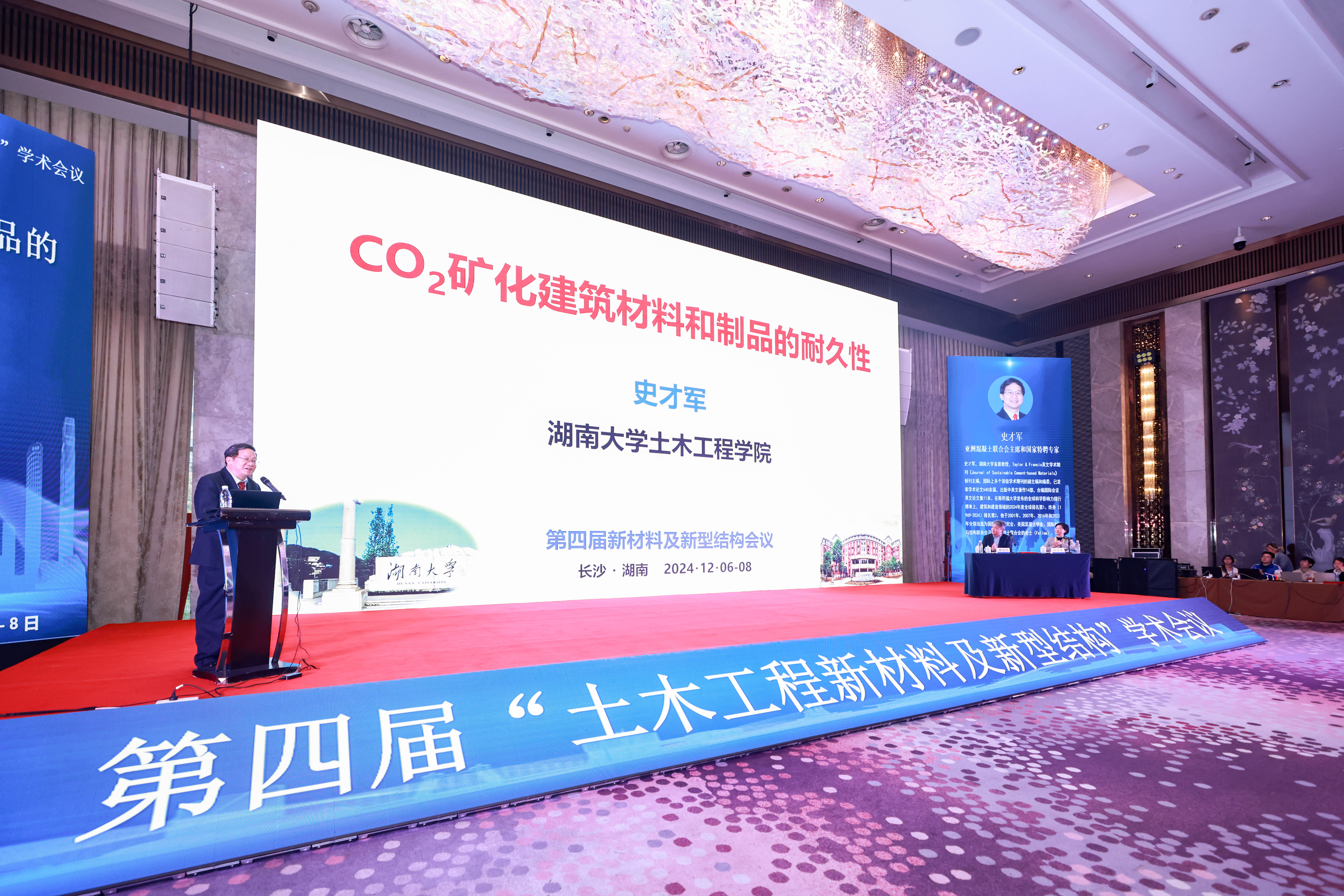 、湖南誉得会展有限公司的协办支持。中国科学院院士滕锦光教授担任本次大会主席,副校长陈仁朋,学院院长华旭刚,亚洲混凝土联合会主席、国家特聘专家、学院教授史才军担任组织委员会主席。校长段献忠参加相关活动。