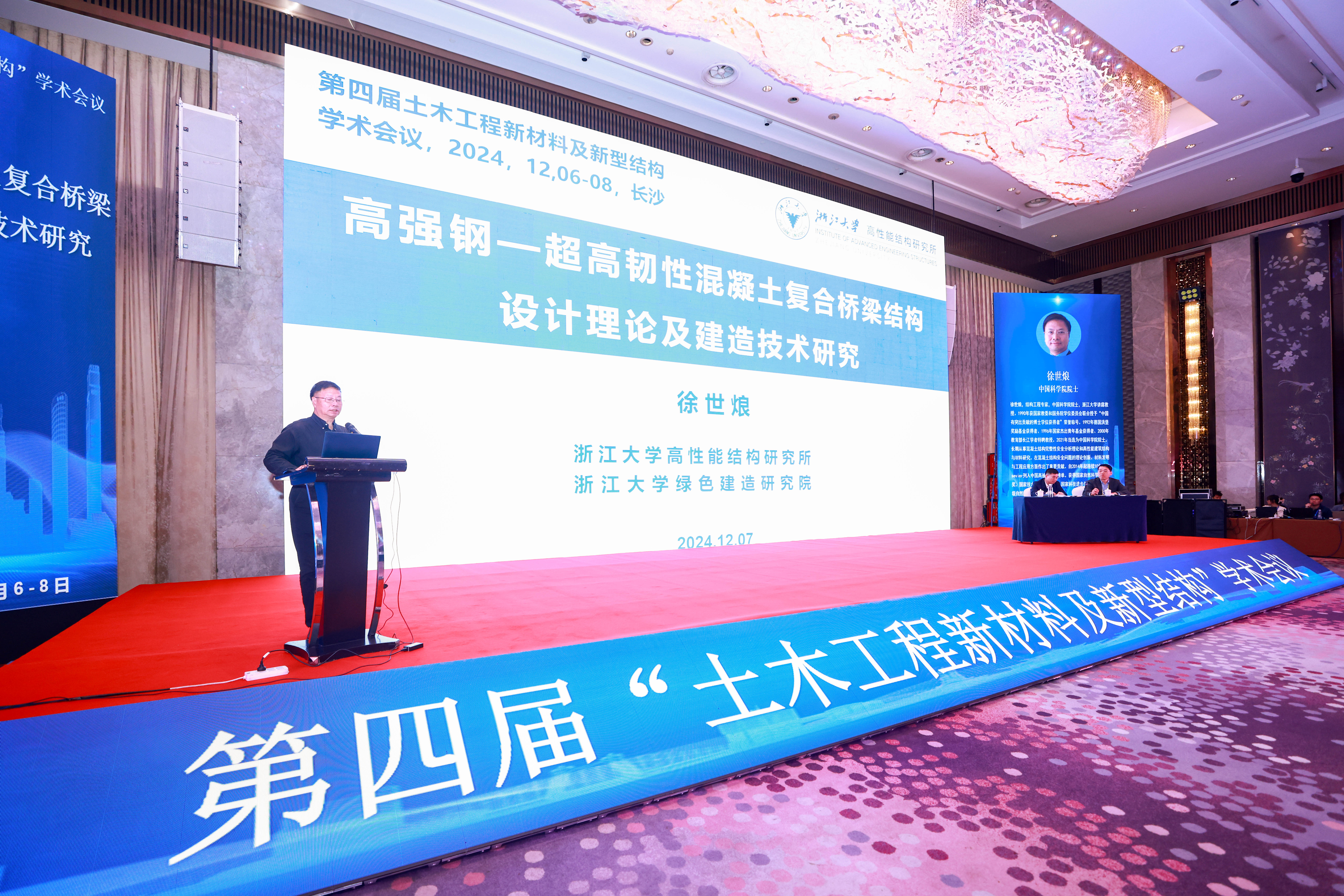徐世烺院士作题为《高强钢-超高韧性混凝土复合桥梁结构设计理论及建造技术研究》的主题报告。