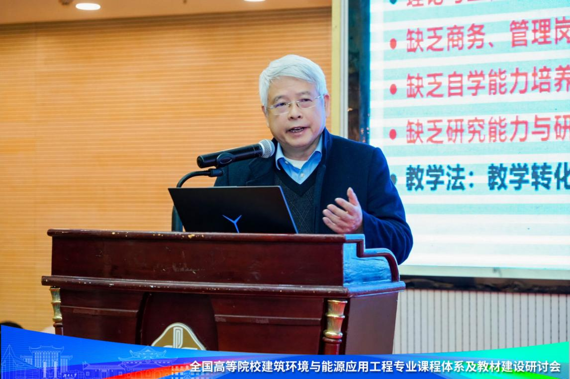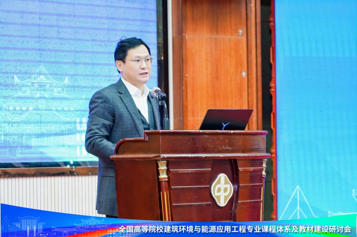 、湖南省建筑环境与能源应用学会承办,中国建筑出版传媒有限公司(原中国建筑工业出版社)等单位协办。建筑环境与能源应用工程专业教学指导分委员会(以下简称“建环教指委”)主任委员、清华大学教授朱颖心,建环教指委副主任委员、中南林业科技大学教授王汉青,建环教指委副主任委员、天津大学教授张欢,建环教指委委员、秘书长、评估(认证)委主任清华大学教授李先庭,建环教指委委员、评估(认证)委委员20余人,以及来自全国各高校的建环专业负责人、教师代表共计350余人参加了此次研讨会。学校副校长陈仁朋,学院党委书记刘文出席相关活动。