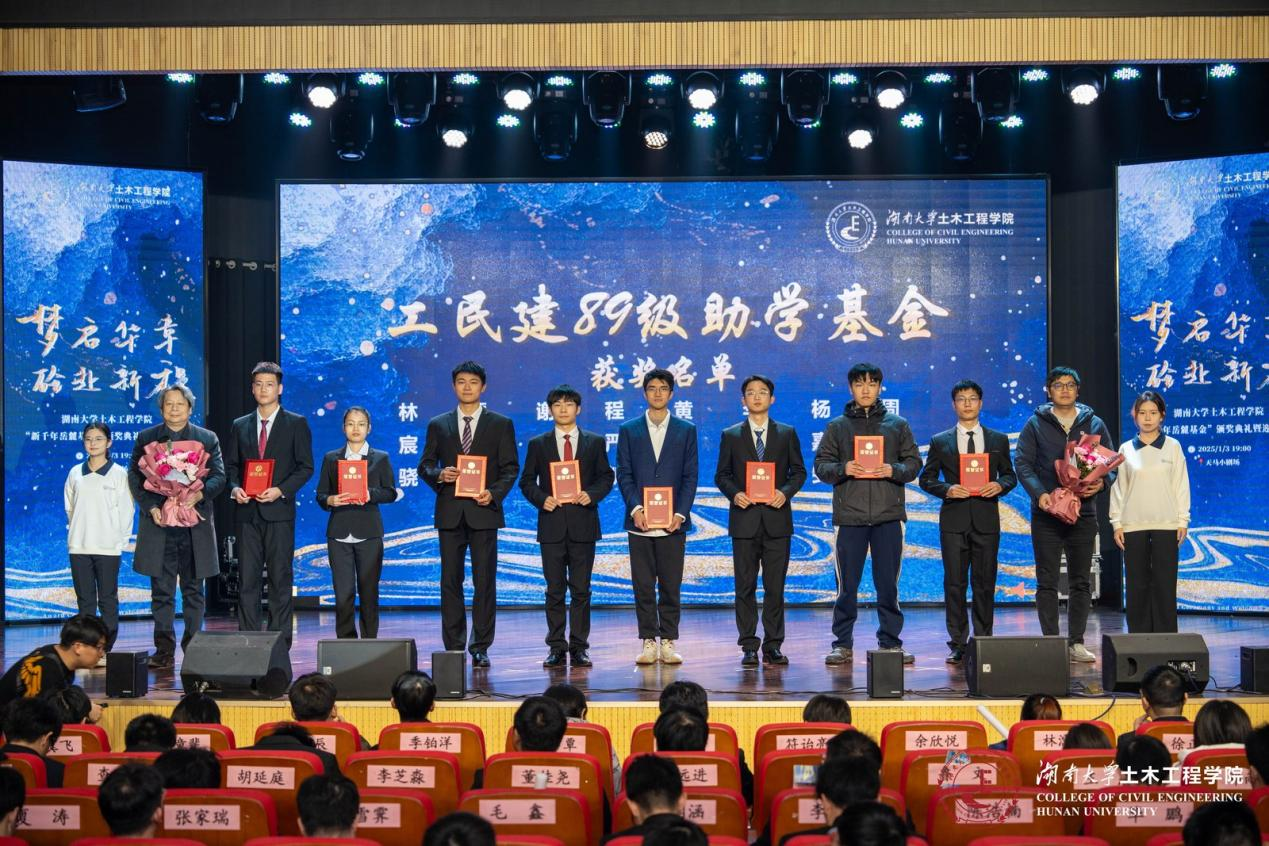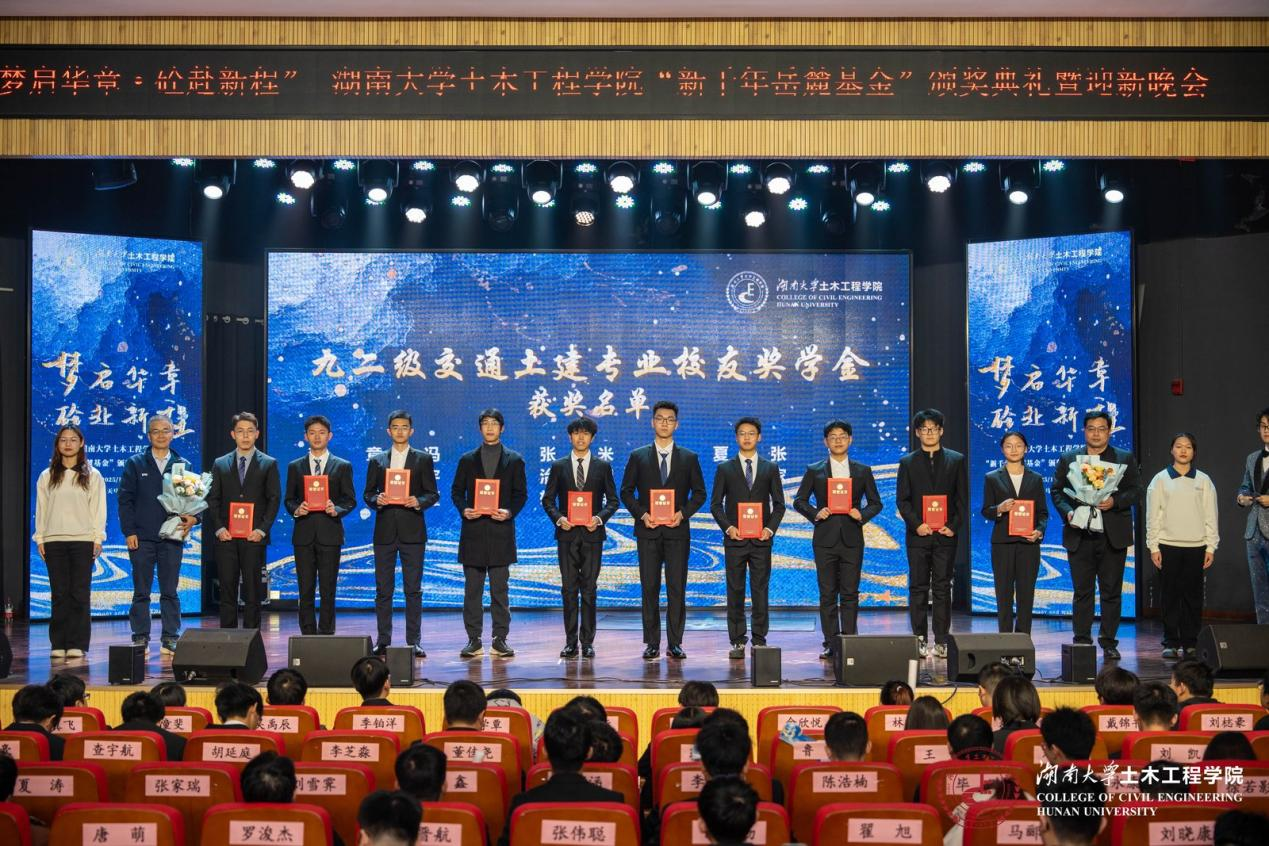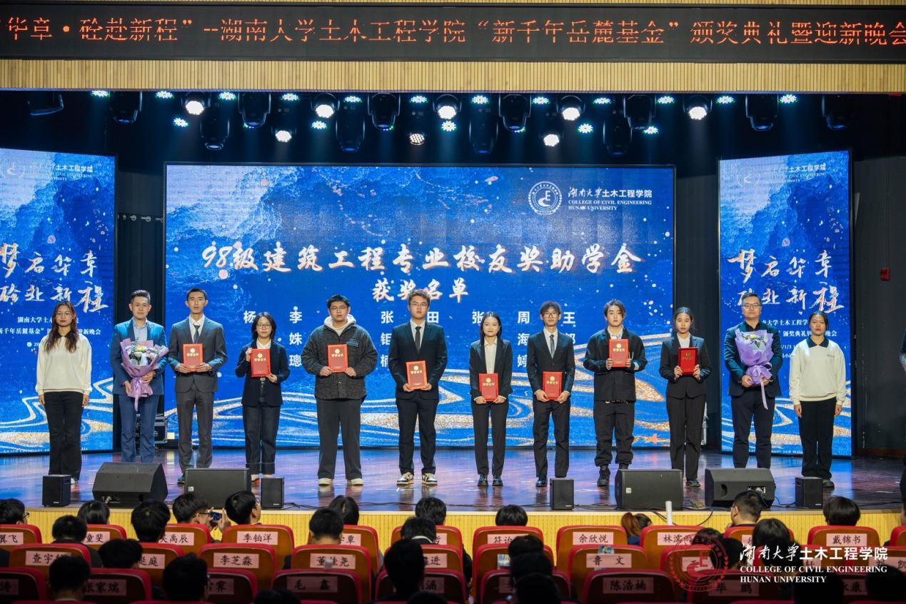 校友、企业等用人单位募捐设立,涵盖12项奖助学金,最早设立的奖助学金已有28年之久。“新千年岳麓基金”每年颁发一次,持续灌溉土木学子的梦想之田,至今已有千余名同学获得奖励和资助。