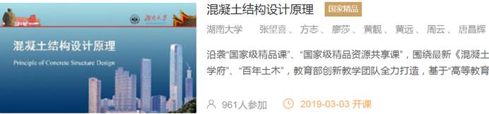 此次入选的《混凝土结构设计原理》,沿袭“国家级精品课(沈蒲生教授负责)”、“国家级精品资源共享课(易伟建教授负责)”,围绕最新《混凝土结构设计规范》(GB50010-2010)展开,依托“千年学府”、“百年土木”,由教育部创新教学团队全力打造,基于“高等教育百门精品教材”、国家“十一五”国家规划教材:《混凝土结构设计原理》(沈蒲生编)建构,教学内容精心组织、逐步推进,专业视频形象、具体、生动。