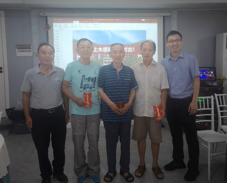 首先,湖大建设监理公司董事长、法人代表兼支部书记姜早龙发言,他回顾了监理公司的发展历程,介绍了公司近况,他再三强调虽然监理公司去年完成了改制,归属于学校经营资产公司,但公司的根基仍然在土木学院,学院是监理公司发展和壮大的坚强后盾。随后赶来的金波老师对老同志们进行了祝福慰问。