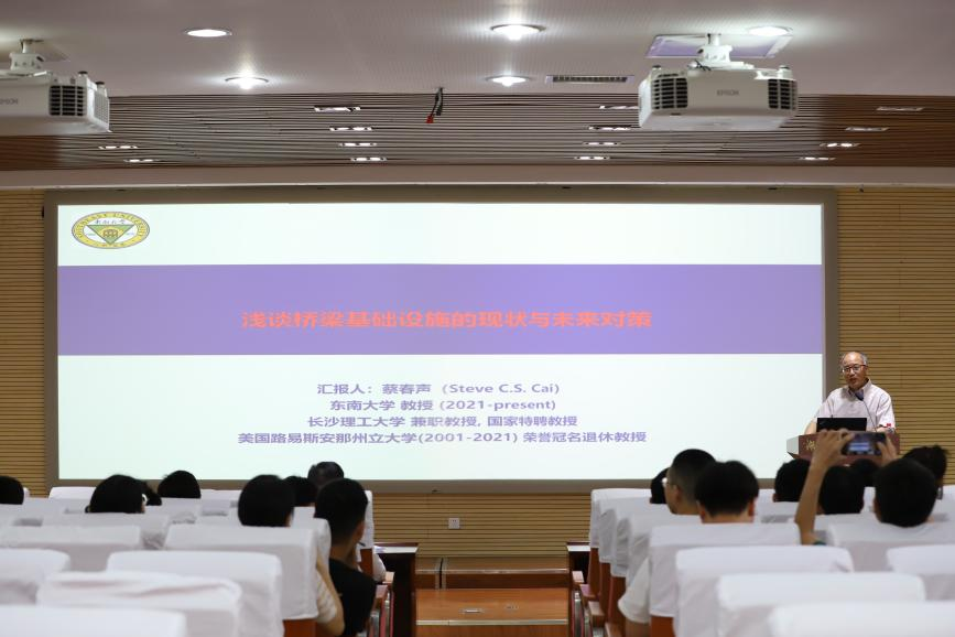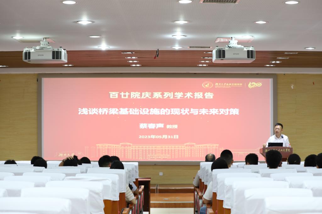 5月31日,东南大学蔡春声教授应邀来院出席“百廿院庆”系列学术活动,作题为《浅谈桥梁基础设施的现状与未来对策》的学术报告,学院师生代表参加本次讲座。讲座由学院院长邓露主持。