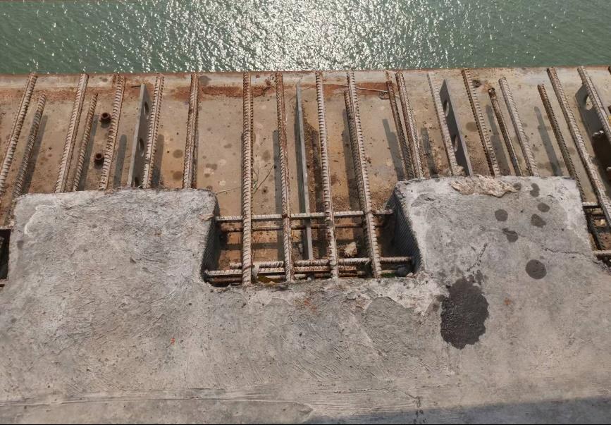 师生参观了1984年建成的广东肇庆马房大桥,该桥为14(跨)×64 m简支钢箱梁桥。2011年全面翻修工程中,第11跨采用了邵旭东教授团队研发的钢-UHPC轻型组合桥面结构目前UHPC层依然完好,未出现开裂或破损现象。
