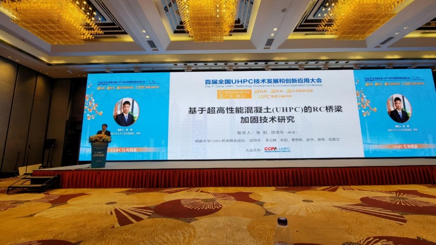 张阳教授作了题为“基于超高性能混凝土(UHPC)的RC桥梁加固技术研究”的学术报告。